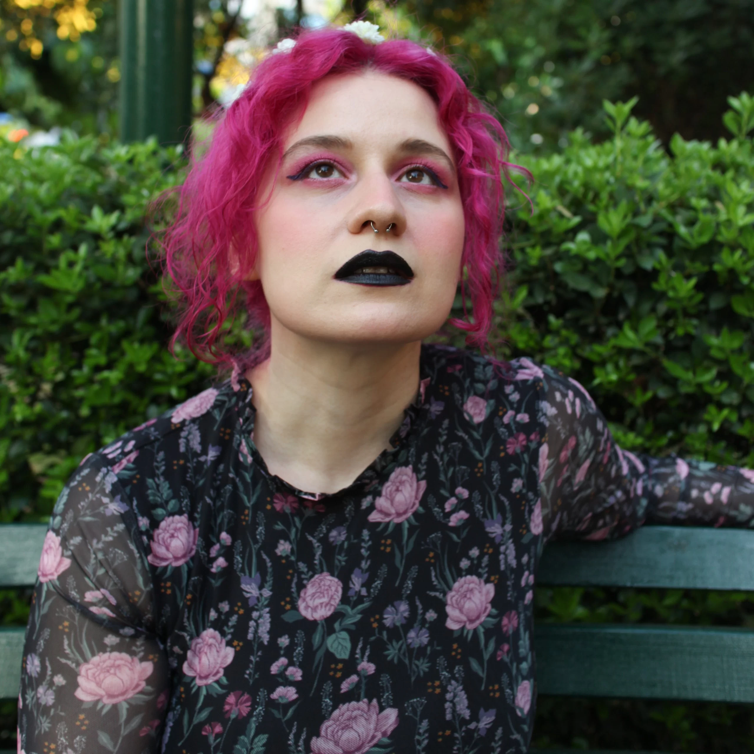 Eugenia Triantafyllou é uma escritora e artista grega com uma tendenciazinha às coisas sombrias. Suas obras foram indicadas aos prêmios Ignyte, Nebula e World Fantasy, e ela foi aluna do workshop de escrita Clarion West. Tem histórias publicadas em revistas como Uncanny, Tor.com e Strange Horizons, entre outras. Atualmente vive em Atenas com um cara e um cachorro. Pode ser encontrada no Twitter e no Mastodon como @foxesandroses ou em seu site website eugeniatriantafyllou.wordpress.com